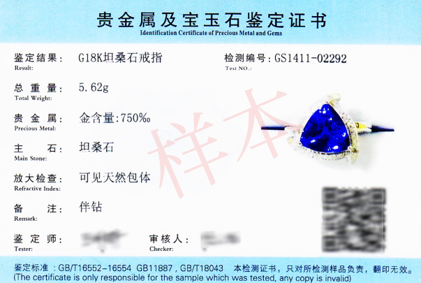 贵金属及宝玉石鉴定证书正反面